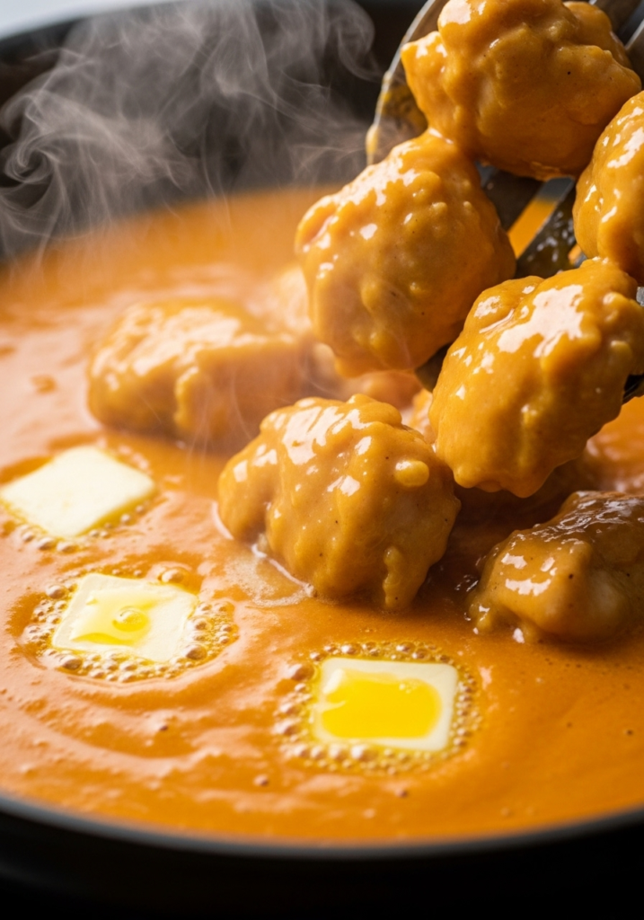 Butter Chicken is a classic Indian comfort dish made with tender marinated chicken simmered in a rich, buttery tomato-cream sauce. Mildly spiced, smooth, and indulgent, this dish is perfect with naan, roti, or steamed rice and loved by both beginners and seasoned cooks.