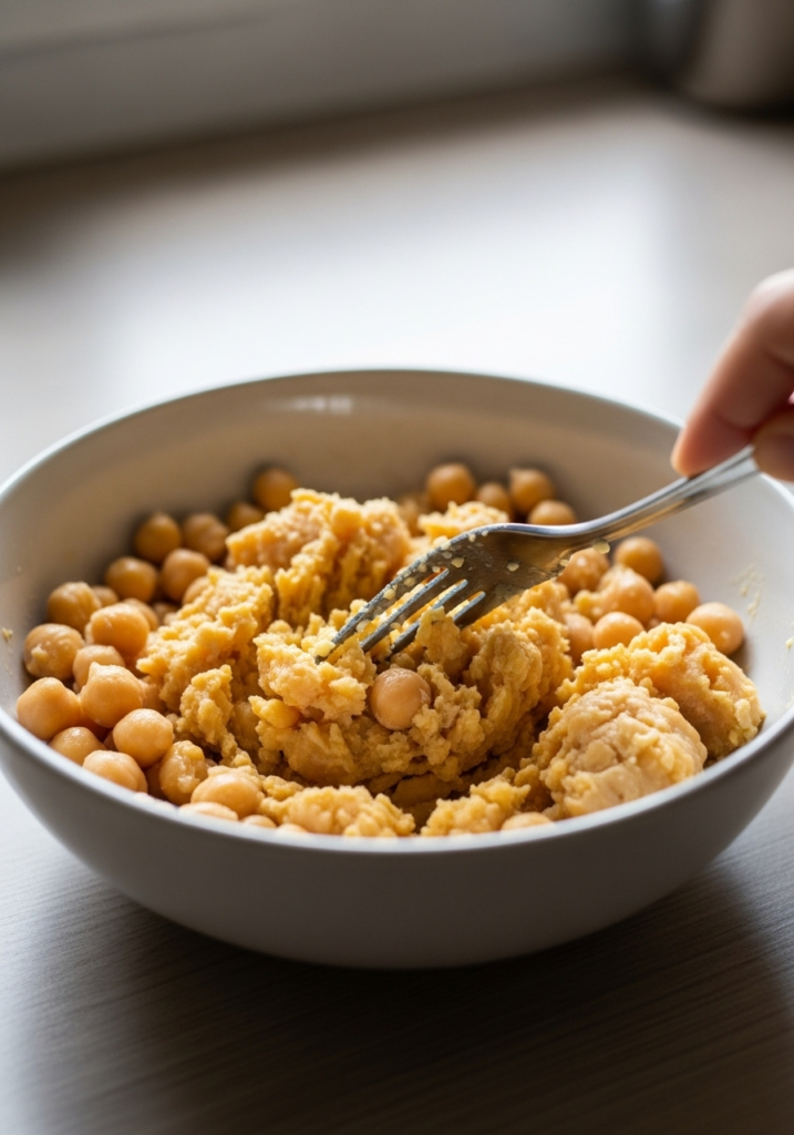 • Mash chickpeas lightly for the best “chicken-like” texture