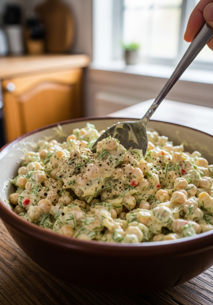 This Chickpea “Chicken” Salad is a hearty, protein-packed vegetarian twist on classic chicken salad. Mashed chickpeas create a meaty texture, while creamy dressing and crunchy add-ins make it satisfying, fresh, and perfect for lunch, meal prep, or light dinners.