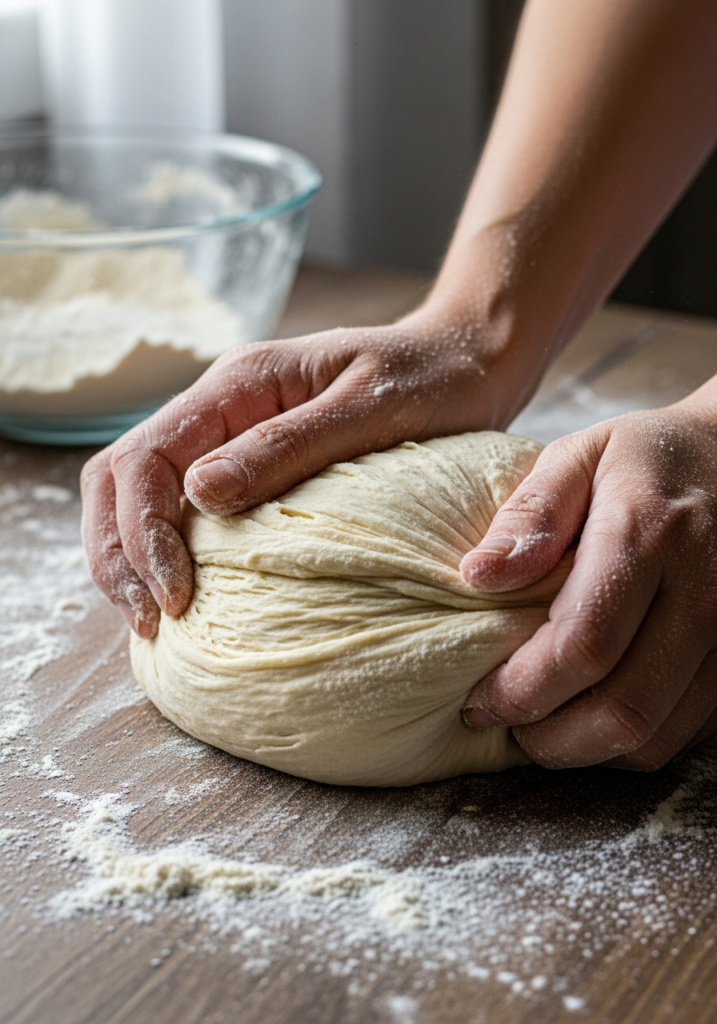 Transfer the dough to a floured surface. Knead for 8–10 minutes until smooth, elastic, and slightly tacky but not sticky.