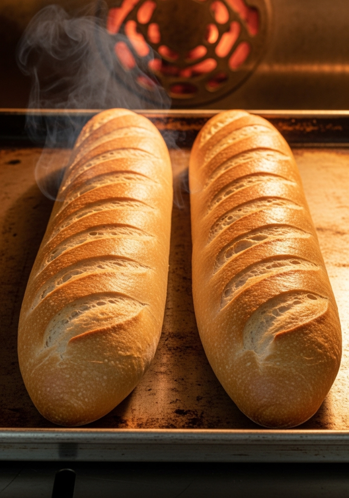 Bake for 22–25 minutes, or until the loaves are deep golden brown and sound hollow when tapped.